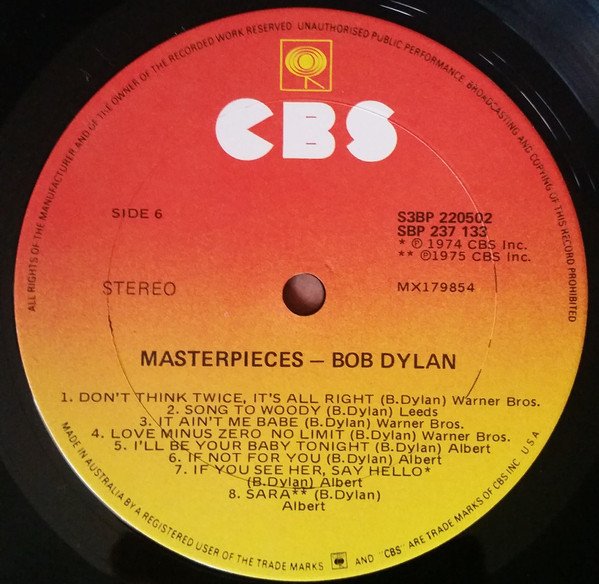 “Masterpieces” is a compilation album by American singer-songwriter Bob Dylan, released on March 12, 1978 by Columbia Records. The three-LP set was released in Japan, Australia and New Zealand in anticipation of his 1978 tour.